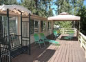 RentalsAccommodationsYour accommodation is designed for comfortable and relaxed living in "Your Bass Lake Home." Each is individually-designed and ready for your vacation holiday. Beds are freshly made, bath linens are provided, and full-size kitchens are complete with cookware, dishes, utensils, linens, soap and paper products. Cable TV, VHS/DVD player, fireplace, charcoal grill, and outside deck(s) are standard features. You bring people, food, and firewood. Honeymoon HideawayMemories are made forever in this adorable one-bedroom cottage at Bass Lake. Enjoy a view of the lake and mountains from the large sun deck and expansive slate patio. Wide windows bring the outdoors near to the living room; inside, you’ll find all the comforts of home. Cozy up to a crackling fire in the stone fireplace, or watch programs on the color cable TV with video player. You can dine out in many area restaurants or prepare your own meals in the complete kitchen, which includes a refrigerator/freezer, dishwasher, conventional and microwave ovens, electric-drip coffeemaker, cookware, utensils, and dining service. The luxury and comfort of a king-size bed and wall-to-wall closet complete the bedroom. Nestled among tall cedars and pines, spring flowers, roses, and wild sweet peas add a garden touch to this romantic hideaway. |